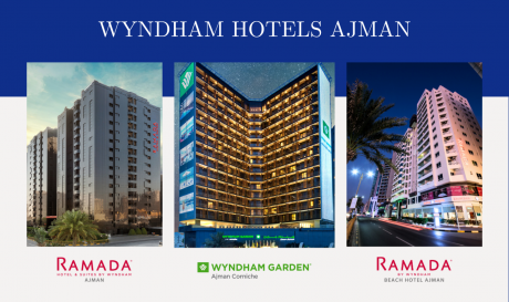 Три современных отеля в Аджмане: Wyndham Garden Ajman Corniche 4*, Ramada by Wyndham Beach Hotel Ajman 4*, Ramada Hotel & Suits by Wyndham Ajman 4* имеют комфортные номера, пляж, бассейн и рестораны — идеальный выбор для отдыха и деловых поездок.
