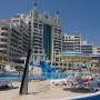 Отдыхали в этом отеле в августе. По системе "всё включено". Еда вкусная, разнообразная, ужины тематические, каждый раз посвещены кухне какой-то страны. 2 ресторана на выбор со шведским столом. Воду в номер не ставят даже при заселении, нужно покупать. Вай-фай в номерах не ловит,только в фойе. Номера чистые, правда в некоторых корпусах есть...