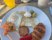 Я что-то не припомню каких-то особых проблем с яйцами и оладьями. Всё было с самого начала завтрака.
