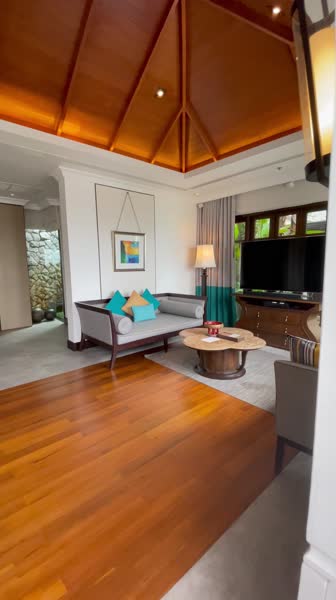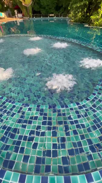 Бассейн в виде лагуны в окружении тропического сада, зона джакузи. Пляж песчаная платформа, не очень хороший заход в море это прям как минус , но бонус - невероятные виды!